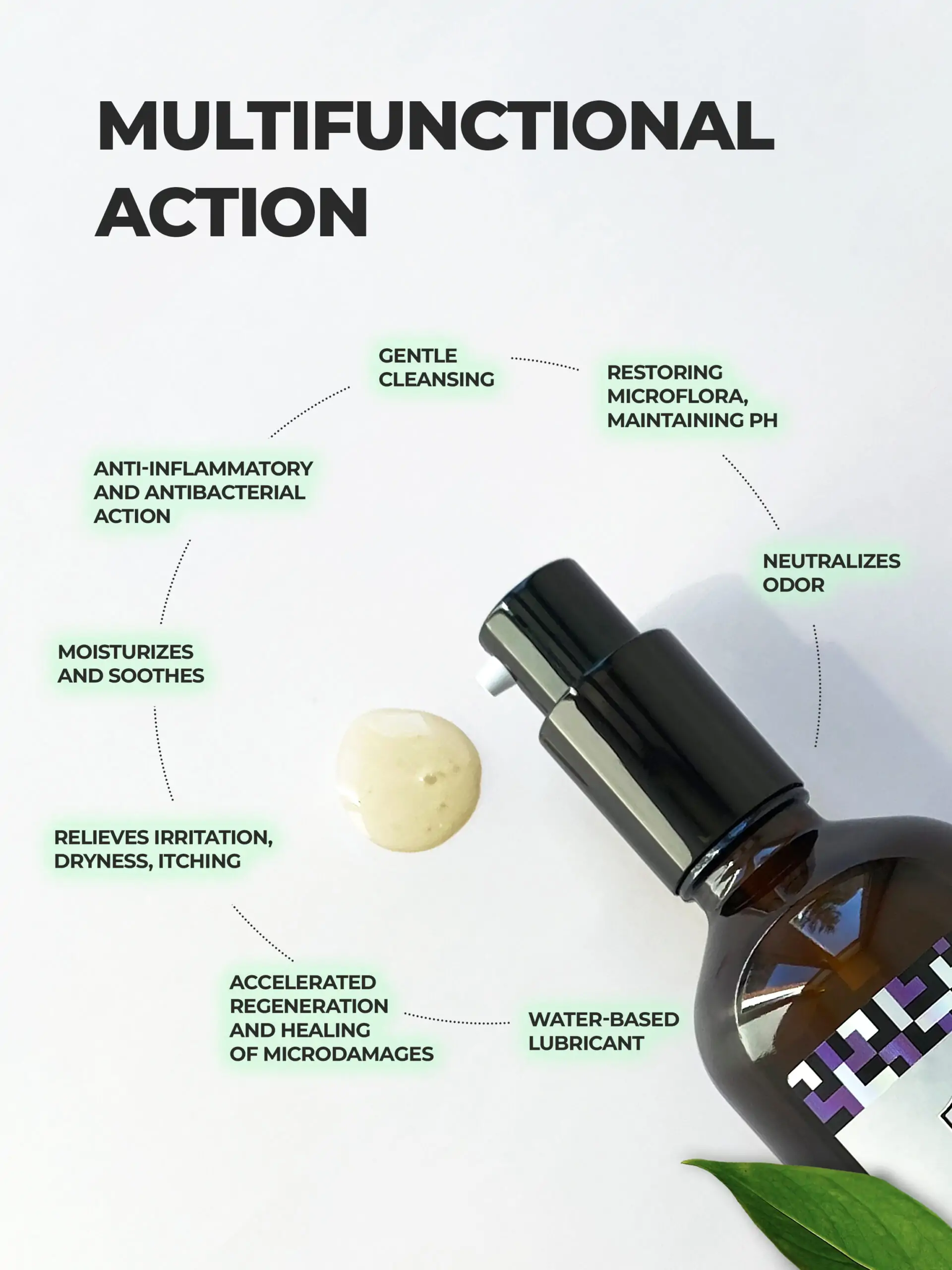 - Restores the hydrolipid barrier of the skin and protects the microflora of the intimate area.